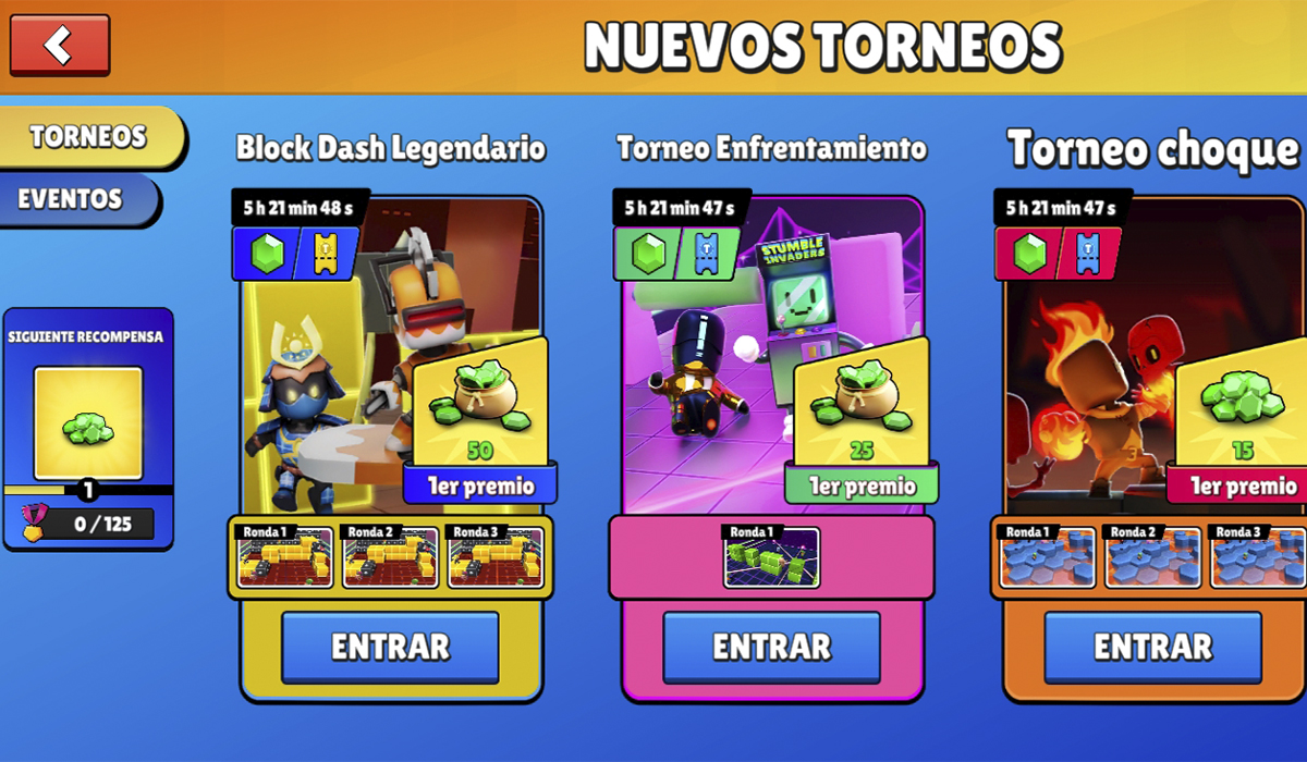 Los torneos son eventos especiales en Stumble Guys donde los jugadores compiten por premios exclusivos, incluyendo gemas. Participa en estos torneos y demuestra tu habilidad para tener la oportunidad de ganar grandes cantidades de gemas. Estos eventos suelen tener desafíos únicos y enfrentamientos más intensos, lo que los hace emocionantes y llenos de acción.
